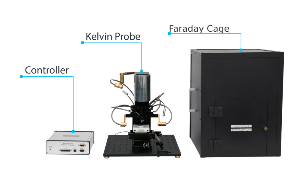Complete Kelvin Probeは、Instytut Fotonowyによる発明であり、従来のケルビンプローブの150年にわたる限界を克服しています。接触電位差(CPD)の変化が観測された場合、その変化がサンプルの仕事関数(WF)に起因するのか、プローブ先端の仕事関数に起因するのかが不明瞭でした。