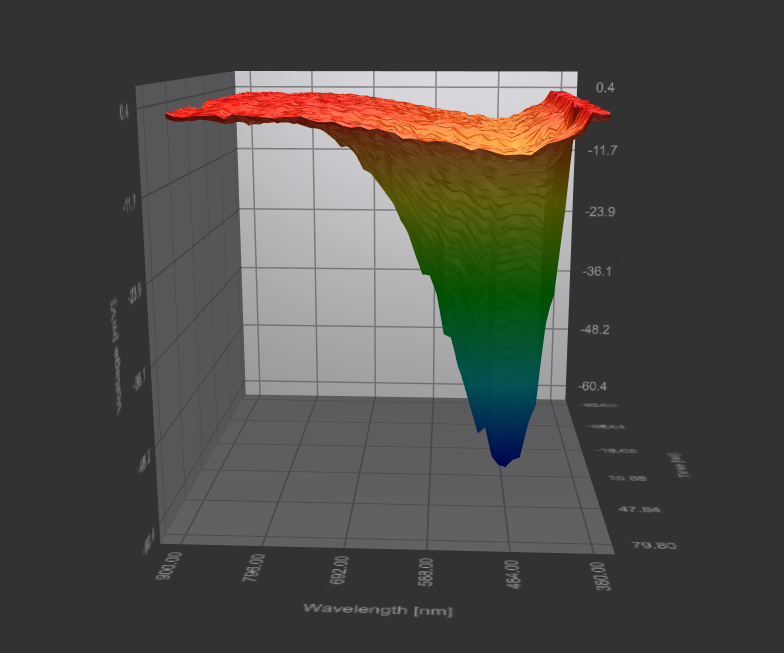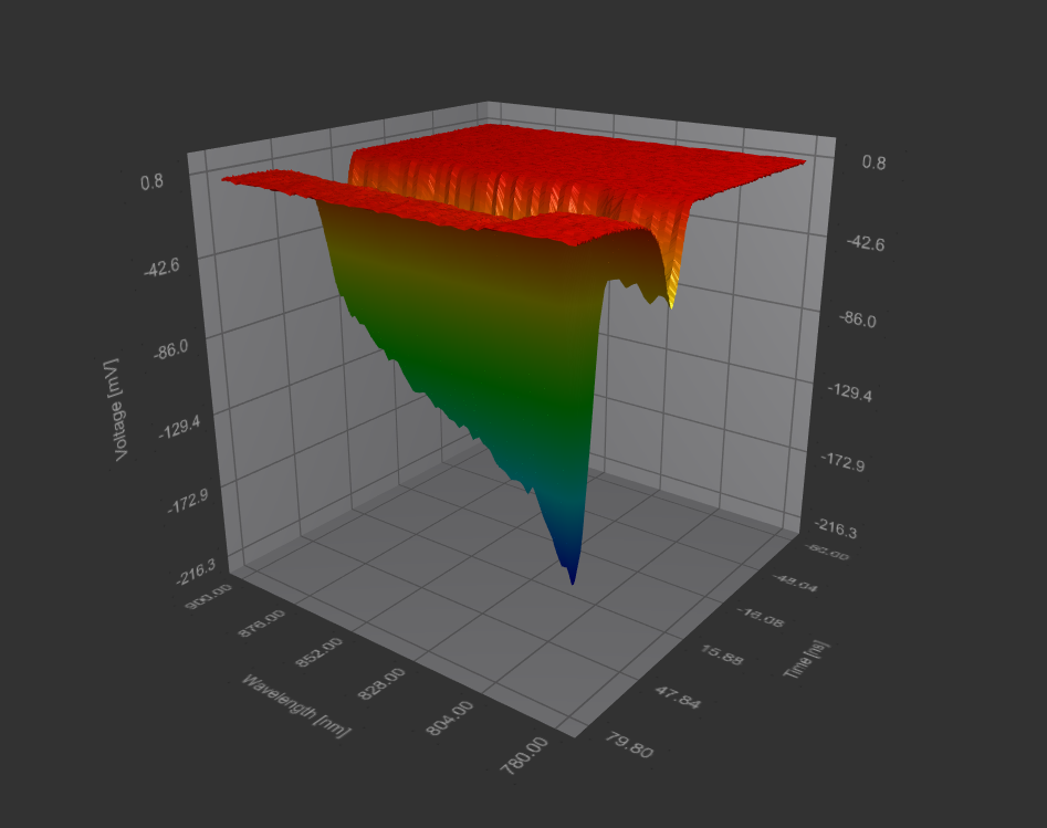 以下に示す結果は、クラクフのヤギェウォ大学化学副学部長によって提供されたものです。測定データの可視化は、実験システム全体を構成するFotoGUIソフトウェアによって実現されています。